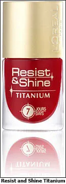 Irresistible, ultra-hip colours, stunning and sophisticated effects, easy single-stroke application with an ultra shiny long wearing nail colour that will last you 7days and 7 nights , Resist & Shine Titanium varnishes by L’Oréal Paris plays on both colour and shine.