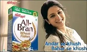 Women today are aware of the need of fibre in food. Kellogg's All Bran is high in fibre. A high fibre diet can help keep the system functioning smoothly. Kellogg's All Bran, happy inside, happy outside,” she adds.