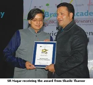 Bangalore-based Magnitude Art Gallery recently won the 'Brands Academy Service Excellence Awards 2011: Karnataka', at a glittering ceremony that was well attended and represented by corporate and marketing mavens from different industries, S. R. Magar, managing director of Magnitude Gallery received the Brands Academy Service Excellence Award 2011 for being the "Most Innovative Art Gallery in Bangalore" from eminent writer and diplomat Shashi Tharoor.