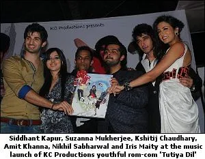 KC Productions launched the music of a youthful romantic comedy, ‘Tutiya Dil’, directed by Amit Khanna and produced by Pushpa Chaudhary and Kshitij Chaudhary. The music of the love story gone wrong, gone right, then a bit wrong and finally right again was launched at a glittering function at Vie Lounge, Juhu, attended by several personalities from the world of films, fashion and entertainment industry. The album is released by Junglee Music.