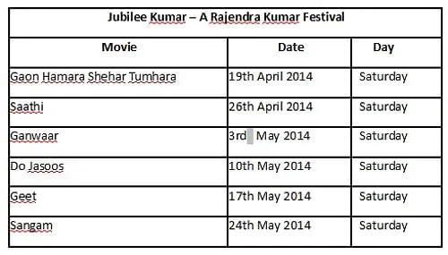 Through its 100 glorious years of existence, Hindi cinema has steadily built a fabulous guild of talented actors. From the talkies era to masala potboilers to current day art films, the Indian movie industry has grown and audiences have many memorable performances to cherish for life. Through its dedicated film festivals, Zee Classic is set to keep the best of such performances from the Golden era alive for current day movie-goers and will present a festival of the superstar - Rajendra Kumar. Starting April 19 to May 31, 2014, the ‘Jubilee Kumar’ Festival will see some of the most acclaimed and evergreen movies of Rajendra Kumar every Saturday at 8:00pm.