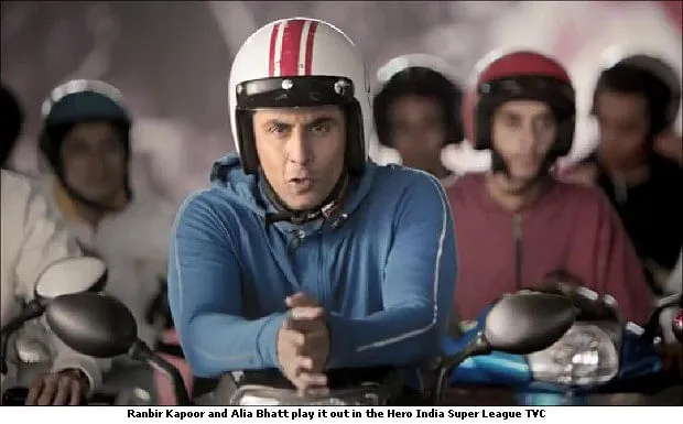 In light of the ongoing frenzy around the Hero India Super League, the title sponsor takes the famed 'Why should boys have all the fun?' idea a step further. In the ad, Ranbir Kapoor and gang, perched on their Hero Maestros, chase a football. They run into Alia Bhatt and gang, who, astride their respective Hero Pleasures, challenge them to a match.