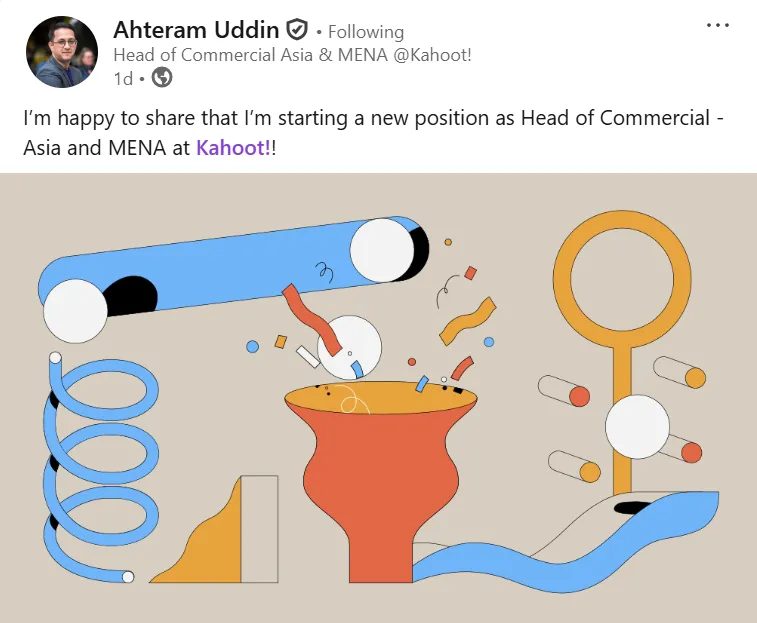 Kahoot has promoted Ahteram Uddin as the head of commercial for Asia and MENA region. Prior to this role, he was working as the VP of commercial for APAC region. He took to LinkedIn to announce the same.